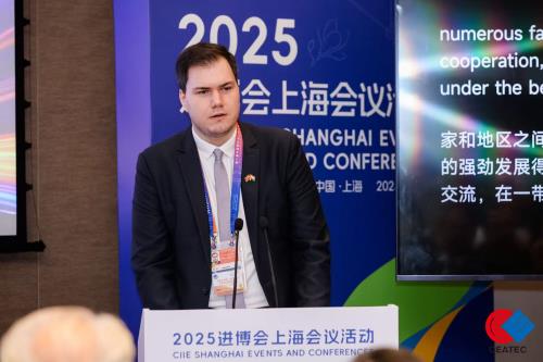 作为进博会上海会议活动边会,论坛汇聚了中国与欧洲的多国政府代表、行业领袖与企业嘉宾,包括中国欧洲经济技术合作协会常务副会长兼秘书长陈璟玥、波黑联邦副总统雷菲克·兰多(Refik Lendo)、匈牙利驻上海总领事馆商务领事戈乐左(Levente G?NCZ?)、波黑外贸商会主席阿赫梅特·埃格里奇(AHMET EGRLIC)、福建省商务厅副厅长林本东、中国-东盟博览会秘书处秘书长王继才、江苏省南通市崇川区市北高新区党工委副书记吴太宾,欧洲企业基伊埃(GEA)工程技术公司区域销售经理杨燕、赫宝嘉(HerbaPlus AS)海外市场总监李中杰、泛亚生物医药股份有限公司副总裁王佳琪女士等嘉宾。围绕智能制造、绿色科技、数字经济、生命健康等关键领域展开深度对话,共同探索中欧合作新路径。